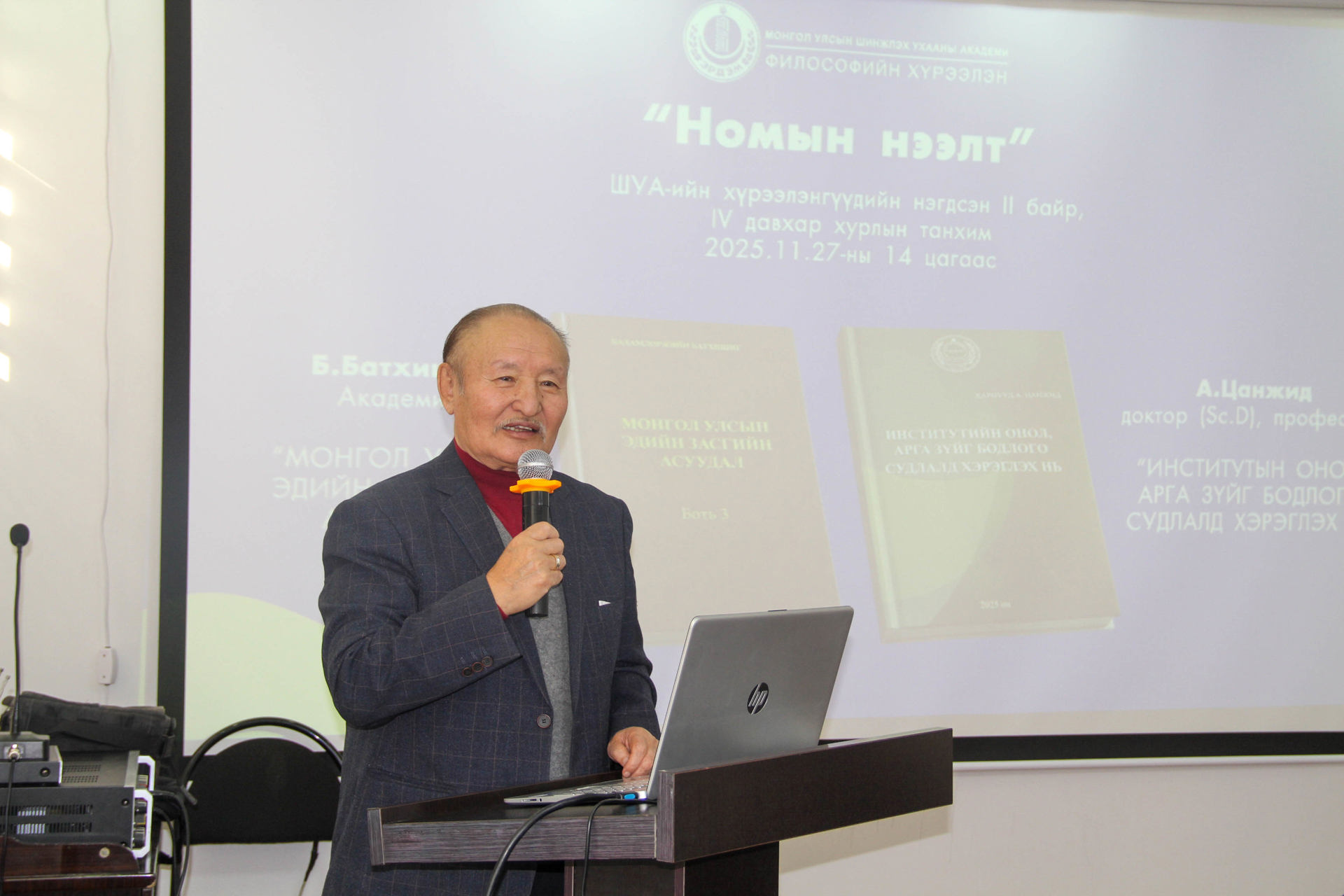 Философийн хүрээлэнгийн нээлттэй хаалганы өдөрлөг Академич Б.Батхишиг "Монгол улсын эдийн засгийн асуудал" боть 3, А.Цанжид доктор (Sc.D), профессор "Институтын онол, арга зүйг бодлого судлалд хэрэгдэх нь" номын нээлтээр өндөрлөлөө.